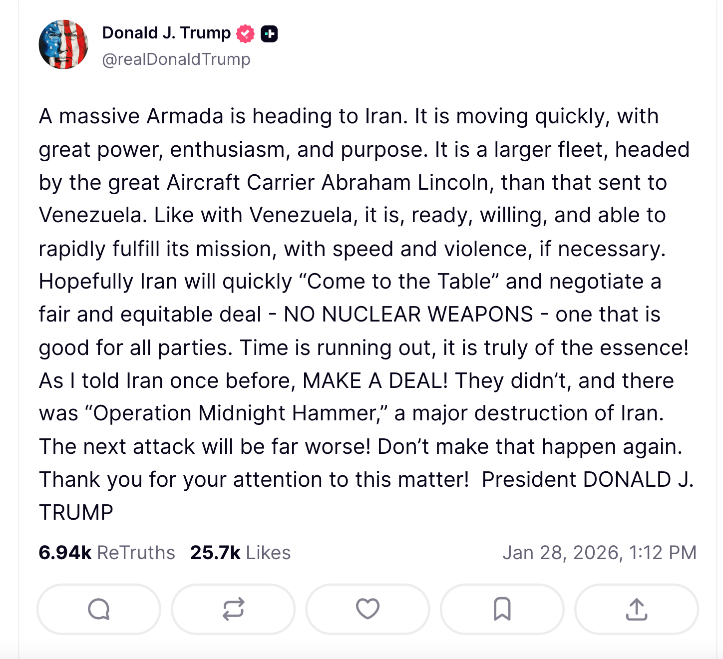 As the USS Abraham Lincoln carrier strike group slid quietly into the US Central Command’s area of operations, Washington insisted it was merely applying “pressure”, a familiar euphemism that has accompanied nearly every American war of the last three decades The decision to escalate toward war with Iran was not made on Truth Social, and it was not made in response to Iranian behavior. It was made quietly, bureaucratically, and long ago, inside the permanent machinery of American power, and in concertation with Israel.